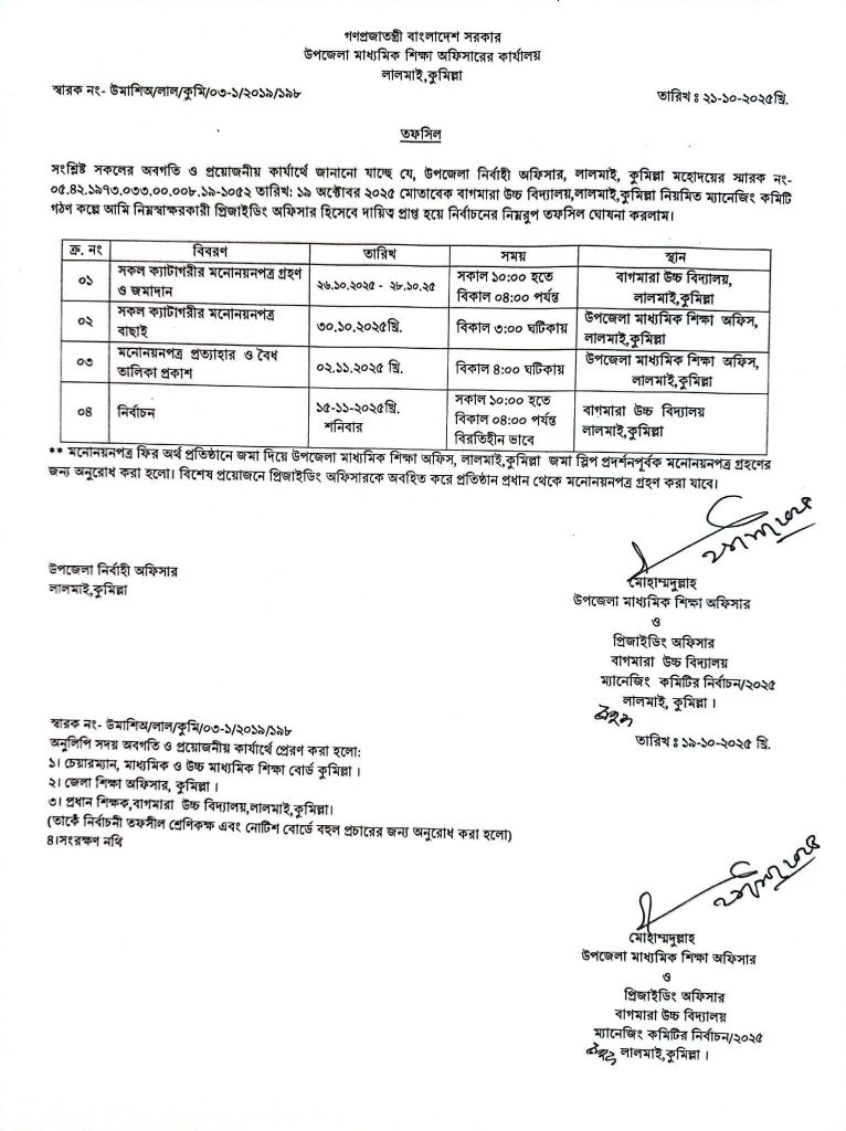বাগমারা উচ্চ বিদ্যালয়ের ম্যানেজিং কমিটির নির্বাচনের তফসিল ঘোষণা