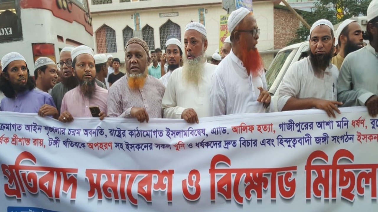 লাকসামে ই’স্ক’ন নিষিদ্ধের দাবিতে সচেতন মুসলিম সমাজের প্রতিবাদ ও বিক্ষোভ