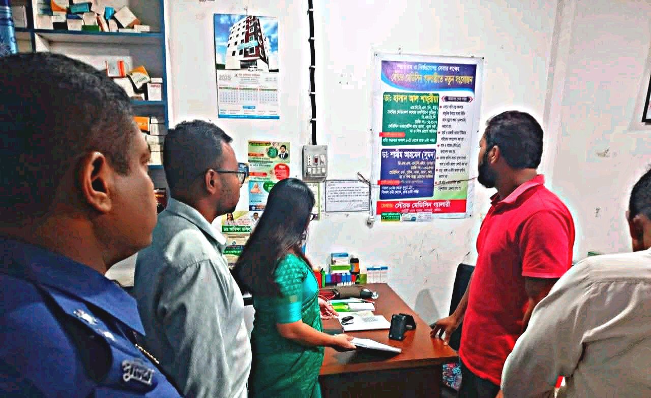 বাজারে ভুয়া ডাক্তার ও অনুমোদনহীন ফার্মেসির দৌরাত্ম্য চরমে পৌঁছেছে।মোবাইল কোর্টের অভিযান খবর পেয়ে দোকান বন্ধ করে পালিয়ে যায় মেডিক্যাল দোকানদারা ।